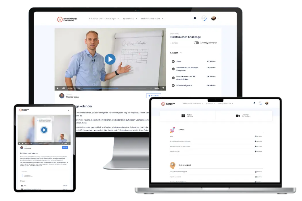 Gepostet auf Anna MüllerTrustindex überprüft, ob die Originalquelle der Bewertung Google ist. Ich habe über 40 Jahre lang geraucht – fast 20 Zigaretten jeden Tag. Für mich war das völlig normal und fest in meinen Alltag integriert. Ehrlich gesagt hätte ich nie gedacht, dass ich es wirklich schaffen würde, mit dem Rauchen aufzuhören. Doch durch die Nichtraucher-Challenge hat sich meine Sicht komplett verändert. Zum ersten Mal hatte ich das Gefühl, wirklich zu verstehen, worauf es ankommt – nicht nur theoretisch, sondern ganz praktisch im Alltag. Besonders mein persönlicher Schlachtplan hat mir extrem geholfen. Ich wusste genau, was ich in schwierigen Momenten tun kann und war nicht mehr hilflos dem Verlangen ausgeliefert. Ich habe das Ganze konsequent durchgezogen und bin heute unglaublich froh darüber. Es fühlt sich einfach gut an, frei zu sein. Mittlerweile bin ich seit fast drei Monaten rauchfrei – und hätte mir das früher niemals vorstellen können. Was mich aber komplett überrascht hat: Ich habe vor 15 Jahren die Diagnose COPD Stufe 2 bekommen. Letzten Donnerstag war ich beim Lungentest – und was soll ich sagen: Meine Lunge ist im grünen Bereich, kein COPD mehr feststellbar. Wie so etwas möglich ist, kann ich mir selbst nicht erklären, da COPD ja eigentlich als nicht heilbar gilt. Ich freue mich riesig über dieses Ergebnis und bin einfach dankbar, dass ich diesen Schritt gegangen bin. Für mich hat sich dadurch so viel verändert – körperlich und auch mental.Gepostet auf BiancaTrustindex überprüft, ob die Originalquelle der Bewertung Google ist. Kann ich nur empfehlen! Ich habe einige Methoden in Kombination genutzt, ich denke aber, dass die Nichtraucher-Challenge den Ausschlag gegeben hat. Ich hatte fast 30 Jahre lang geraucht, vor der Challenge schon auf 9 Zigaretten täglich reduziert. Weniger hatte ich nicht geschafft. Während der knapp 30 Jahre, hatte ich maximal 5 Tage nicht geraucht; ich konnte einfach keinen Tag ohne. Mit der Nichtraucher-Challenge habe ich von einem Tag auf den anderen aufgehört und seit dem überhaupt kein Verlangen mehr. Das ist jetzt schon 2 1/2 Jahre her 🙂Gepostet auf Muaz MujicTrustindex überprüft, ob die Originalquelle der Bewertung Google ist. Mein Name ist Muaz Mujic. Der Mann aus dem Video. Nach 25 Jahren Raucherkarriere und mindestens 100 gescheiterten Aufhörversuchen, hab ich es endlich mit dem Programm der Nichtraucher-Challenge geschafft aufzuhören. Ich war nie glücklicher als jetzt. Das Gefühl sich nicht ersticken zu müssen ist sehr befreiend. Das Programm war kommunikativ und wissenschaftlich auf höchstem niveau. Diesem Programm, würde ich 10 Sterne geben, wenn ich könnte. 👍👍👍Gepostet auf Kathy RumplerTrustindex überprüft, ob die Originalquelle der Bewertung Google ist. Was soll ich sagen, … ich bin seit 3 Jahren Nichraucher! Das Programm hat mich dabei unterstützt!Gepostet auf DanielTrustindex überprüft, ob die Originalquelle der Bewertung Google ist. Mehr gibt es dazu wohl nicht zu sagen, mir hat es geholfen.Gepostet auf Ursula GnanTrustindex überprüft, ob die Originalquelle der Bewertung Google ist. Ich kann euch die Nichtraucher-Challenge von Thomas sehr empfehlen! Nach 41 Jahren als Raucherin habe ich es endlich geschafft mit dem Rauchen aufzuhören. Zum Schluss habe ich 40 Zigaretten pro Tag geraucht. Die vielen kleinen Videolektionen haben mir geholfen, meine Gewohnheiten zu verstehen und den Rauchstopp optimal vorzubereiten. Die Unterstützung durch die Challenge-Partner-Idee war genial. Meine Challenge Partnerin war eine Nichtraucherin, also kein "Gefährte der gleichen Art", aber die tägliche Unterstützung durch motivierende Botschaften und Bilder haben mir sehr durch die erste Zeit geholfen. Die Nichtraucher-Challenge ist mehr als nur ein Rauchstopp-Programm. Sie bietet eine umfassende Herangehensweise, die wenn man sich voll darauf einlässt, wirklich zum Erfolg führt. Ich kann sie uneingeschränkt weiterempfehlen. Viele Grüße UllaGepostet auf s bobolinaTrustindex überprüft, ob die Originalquelle der Bewertung Google ist. Dank der Nichtraucher-Challenge bin ich seit 7 Monaten Nichtraucher. Ich habe noch nie Geld für ein Programm ausgegeben, und wollte es auch nicht tun. Aber mir hat das Konzept der Nichtraucher-Challenge gefallen. Und dann dachte ich mir komm vielleicht gerade weil ich Geld in das Programm investiere, bin ich umso mehr motiviert auch wirklich mit dem Rauchen aufzuhören. Die ersten 30 Tage habe ich vor allem wegen dem Challenge-Kalender nicht geraucht. Der war ein mega Motivation, weil ich wusste, dass wenn ich rauche, direkt ein Kreuz rein muss. Nachdem die 30 Tage rum waren kam noch ab und zu das Verlangen nach einer Zigarette, aber ich konnte mich dazu entschließen nicht zuzugreifen. Auch weil ich wusste das ich inzwischen Nichtraucher bin (Mindset war ein großes Thema im Programm).Gepostet auf Heike LambertzTrustindex überprüft, ob die Originalquelle der Bewertung Google ist. Ich habe die Nichtraucher-Challenge vor zwei Jahren gestartet und bin damit auch zur Nichtraucherin geworden. Vier Monate habe ich es durchgehalten, dann kam aber "die eine Zigarette". Thomas hat im Kurs oft darauf hingewiesen, dass man diese nicht rauchen soll, aber ich habe mich dazu hinreißen lassen, sie zu rauchen. ABER ich bin jetzt entschlossener denn je es wieder durchzuziehen und diesmal auch nicht die eine Zigarette zu rauchen. Das Programm hat mir damals sehr gut gefallen, weil es so gut strukturiert ist. Deshalb habe ich mir den Zugang zur Nichtraucher-Challenge wieder gesichert und freue mich einen neuen Anlauf zu starten.